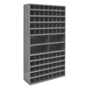 12” Deep, Tall Part Bins with Slope Shelf Design, Overall Dim: WxDxH (In.) 33-13/16 x 11-15/16 x 64-1/2, Total Openings: 84, Bin Dim: WxDxH (In.) (80) 4 x 11-15/16 x 5-1/16(4) 16-3/8 x 11-15/16 x 7-7/8, Carton: 1